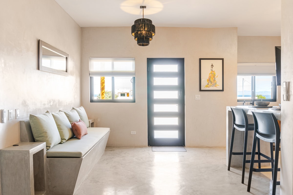 Fiber Internet- Expansive panoramic views of the Sea of Cortez from this quaint studio on top of a separate 2 bedroom home. Everything you need is here - beach access, laundry, kitchenette, AC, and private bathroom with updated shower and toilet (aug 2025). Breathtaking views and peaceful surroundings. Close to restaurants and stores, outdoor kitchenette allows you to cook with a million dollar view. 3-5 minute walk to beach and kite launch. Search "iQiPwZujl9w" in Youtube for video.