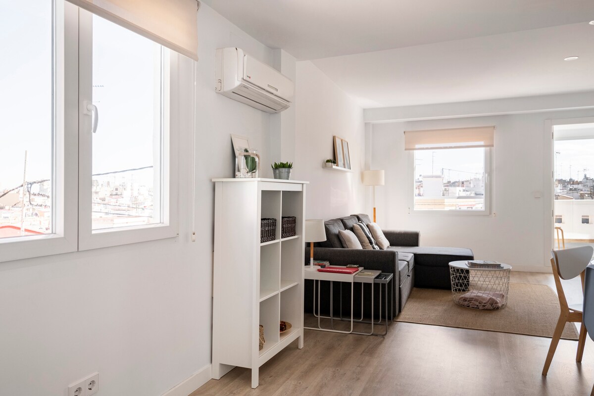 Da se boste počutili kot doma, v očarljivem in toplem apartmaju, popolnoma novem, ki je bil zasnovan z vsako podrobnostjo v mislih, da bi zagotovili udobno in brezskrbno bivanje. Njegova prostornost, popolna oprema in kakovostne geste vam želijo ponuditi bivanje polno dobrih trenutkov. Nahaja se v El Barrio del Botanico, v prvem nadstropju (brez dvigala) nekaj metrov od vhoda starega mestnega jedra Valencia in v bližini najpomembnejših in turističnih krajev v mestu.