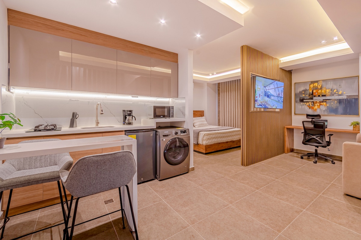 Udobno, sodobno, novo in na neverjetni lokaciji. To 35 m² veliko stanovanje je namenjeno tistim, ki iščejo počitek, oblikovanje in povezljivost v Caliju. Idealno za pare, digitalne nomade ali zdravstvene obiske. Uživajte v klimatski napravi, Wi-Fi s hitrostjo 350 Mb/s, opremljeni kuhinji, pralnem stroju, pametnem televizorju in izpadu elektrike. Ta pametna stavba je le nekaj korakov stran od znanih klinik, stadiona Pascual in živahne jedilnice Parque del Perro. 🏥 4 min hoje do Imbanaca – ⚽ 4 min hoje do Pascuala.