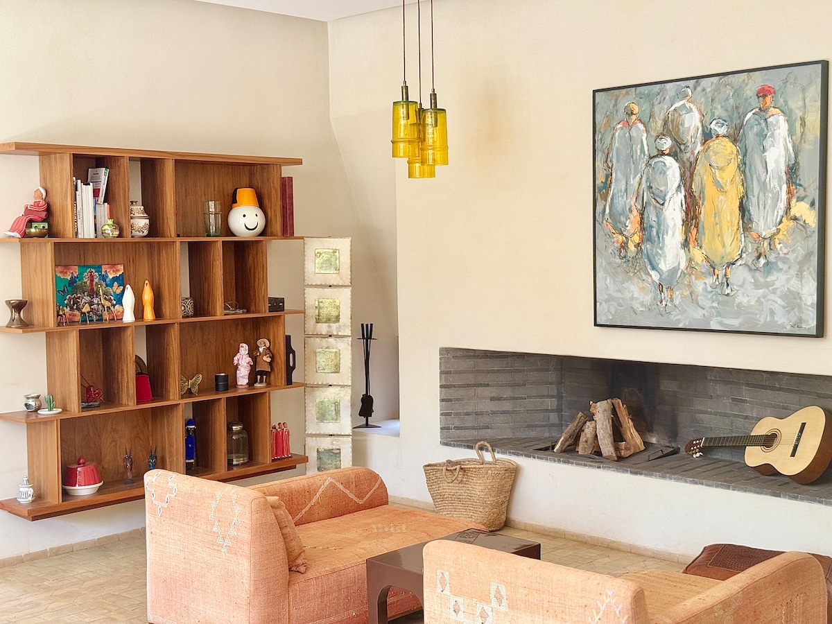 Maison bohème chic, piscine privée, vue Atlas