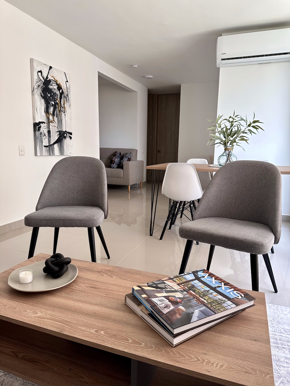 Dobrodošli v svojem domu v Barranquilli! Naš sodobni apartaestudio v 11. nadstropju ponuja mirno in prijetno vzdušje, idealno za počitek in delo. Nahaja se v bližini nakupovalnega središča Viva Mall in znanih klinik ter je kot nalašč za tiste, ki iščejo udobje in priročnost.