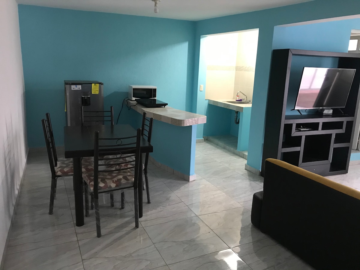 Uživajte v tem priročnem in udobnem predelanem stanovanju 10 minut od letališča Mexico City, stadiona BNP/Autodromo, športne palače, avtobusnega terminala TAPO Centro Oceania/IkEA s kavarnami, bari, restavracijami, kinodoma in trgovinami. Predelano stanovanje se nahaja v drugem nadstropju z enojno posteljo, opremljeno kuhinjo, televizijo ROKU, pisalno mizo, sefom za Wi-Fi in zasebno kopalnico. Stavba ima skupni pralni stroj in strešni vrt. Pred stavbo je park.