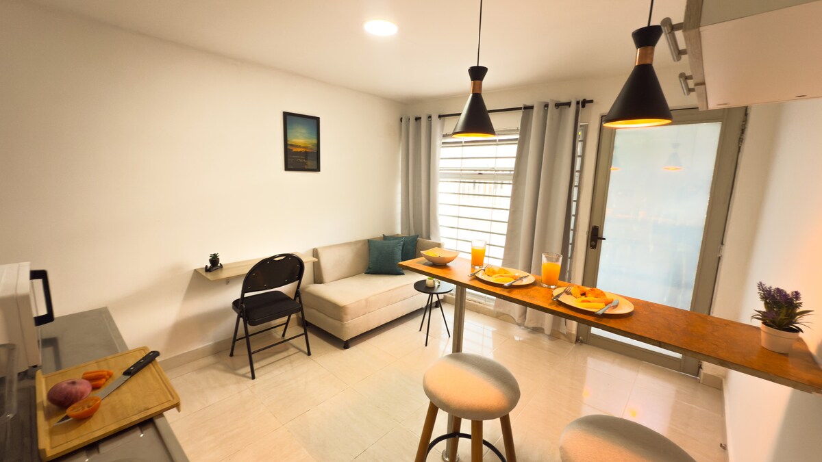 🏡Ta elegantna nastanitev je idealna za družine, prijatelje, pare ali posameznike. Popoln prostor! Udobno sprejme do 6 oseb, z 2 spalnicama, 2 kopalnicama, prostorno dnevno sobo, balkonom in ločenim vhodom v drugem nadstropju iz prvega nadstropja. Nahaja se v mirnem stanovanjskem območju, v bližini kopenskega terminala, klinik, nakupovalnih centrov ALAMEDAS, EL NUESTRO, sodišč, stadionov in olimpijske vile. Udobje, lokacija in prostor na enem mestu!