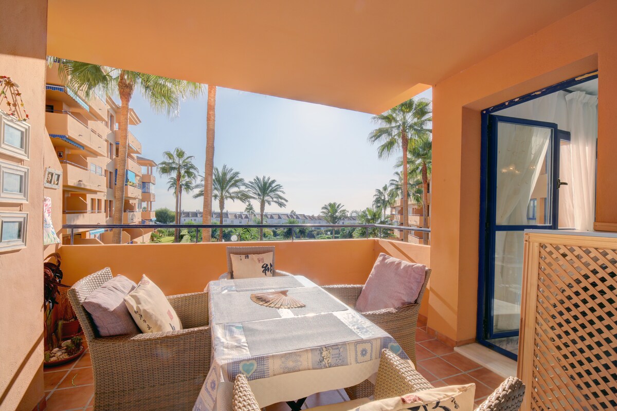 Stanovanje z 2 spalnicama in 2 kopalnicama, ki vključuje veliko prostora za shranjevanje. Okna so tristranska zastekljena, zato ima prostor zelo mirno vzdušje. Prostorna terasa omogoča prijetno druženje zunaj s čudovitim razgledom na plažo in palme. Ima pisalno mizo z omrežjem Wi-Fi. Pomembno je omeniti, da ima to stanovanje tudi sistem talnega ogrevanja, ki je praktičen za zimske mesece. Do plaže ali trgovin in restavracij v pristanišču Sotogrande se sprehodite v 5 min.