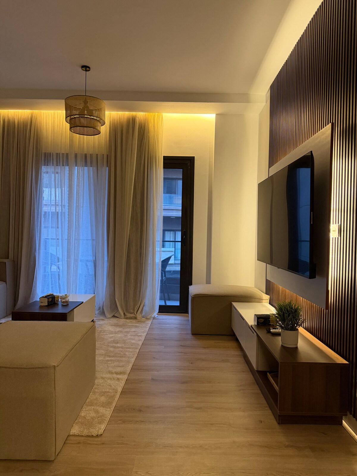 Uživajte v elegantnem in udobnem bivanju v tem sodobnem enosobnem stanovanju v naselju Privado Madinaty. Prenočišče ima odprto kuhinjo, ki je v celoti opremljena z vsemi osnovnimi potrebščinami, čudovito oblikovano kopalnico z elegantno prho in hotelskimi detajli ter toplo in prijetno vzdušje v vseh prostorih. Stanovanje je brezhibno čisto, za vaše udobje pa sta na voljo sveža posteljnina in čiste brisače. Vsak kotiček je skrbno pripravljen, da vam zagotovi sproščujoče in popolnoma oskrbovano izkušnjo s 5 zvezdicami.