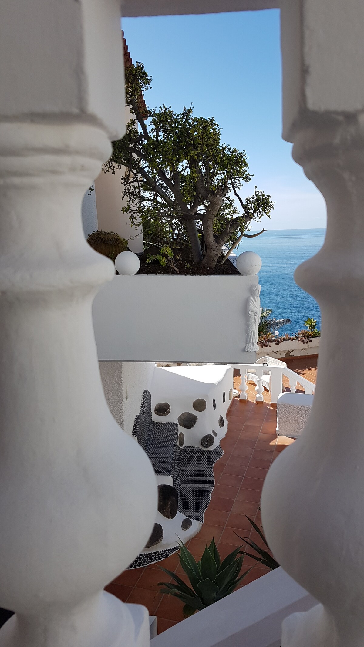 Prenovljeno in elegantno stanovanje s pogledom na morje. Udobno in romantično. Opremljen z vso opremo; Glasbena oprema z USB in Bluetooth, 43"TV, NETFLIX, Disney+ in Satellite. Zasebna terasa z lepo verando kot nalašč za uživanje v sveče večer, tudi majhen in prijeten vrt tudi zasebno. Skupnost bazen le 10 korakov stran, s čudovitim razgledom na ocean in Puerto de la Cruz. ZAGOTAVLJAMO ČISTOČO, SANITARIJE IN UDOBJE.