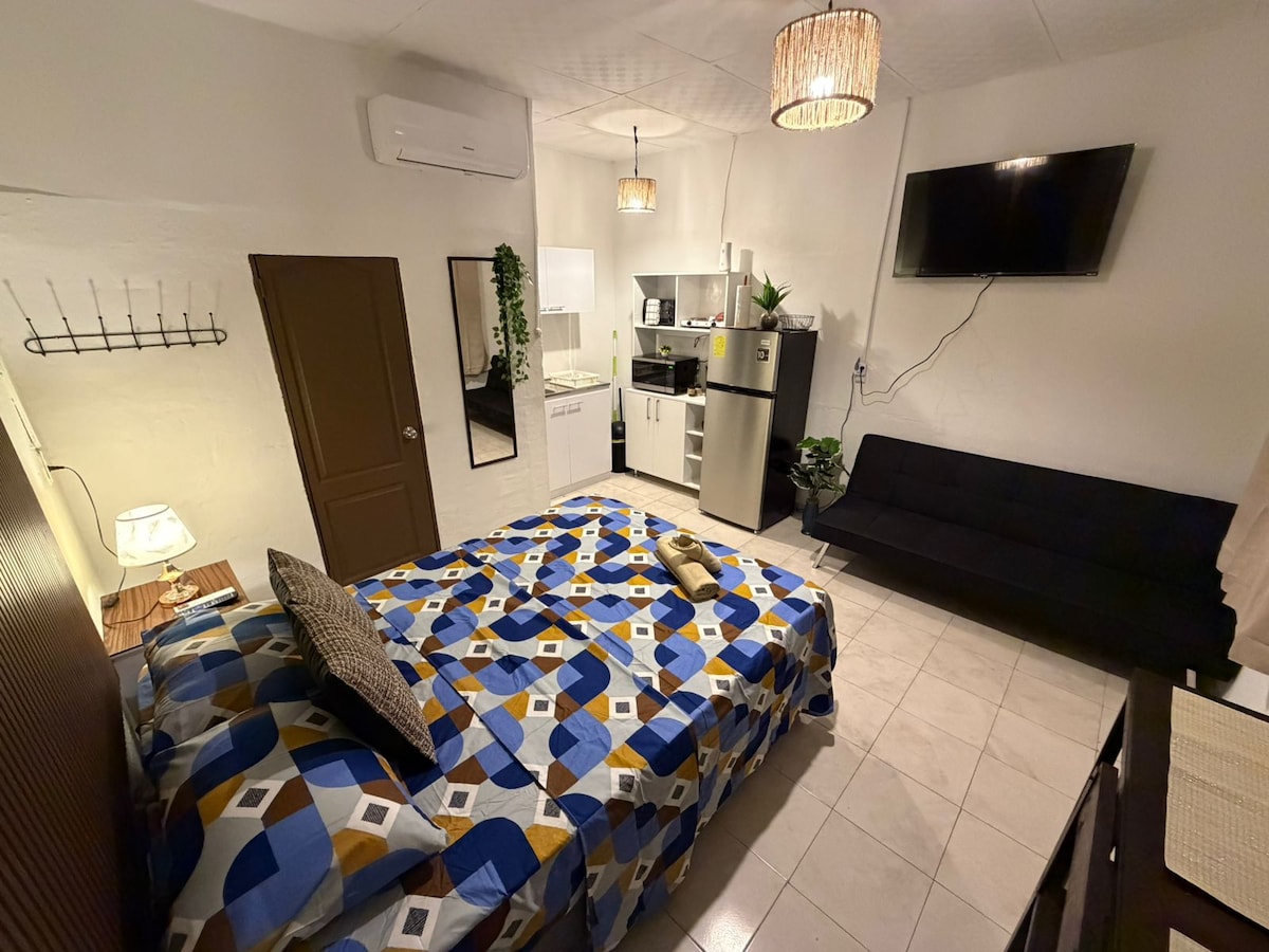 Udobno ZASEBNO mini stanovanje z 1 posteljo, ki se nahaja v osrednjem, zasebnem, mirnem in varnem stanovanjskem območju San Salvadorja. Lastna kopalnica, klimatska naprava v sobi, Wi-Fi, pametna televizija z Netflixom, omara, hladilnik, 1 zunanje parkirišče itd. Namestitev se nahaja v bližini stadiona Cuscatlán in 10 minut od nakupovalnih centrov, kot so La Gran Vía, Multiplaza, El Salvador in 5 minut od Starbucksa, restavracij, lekarn itd.