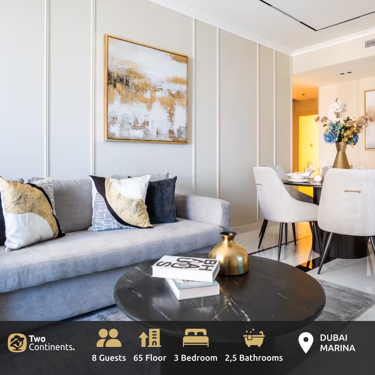 Luksuzno | 3 spalnice, 65. nadstropje | Pogled na marino in palme