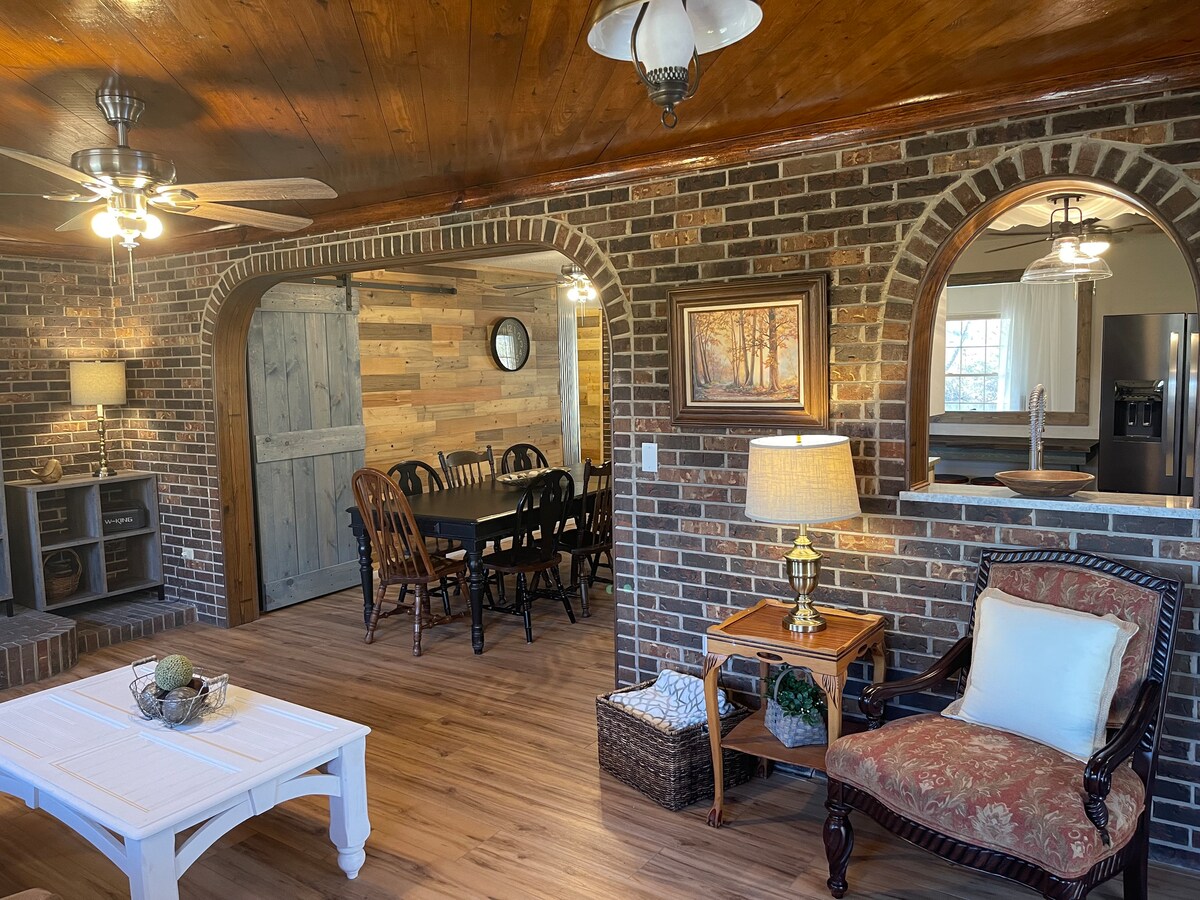 Edinstvena oddaljena lokacija na družinski kmetiji. Osamljena kamnita hiša s 50 ' teraso s pogledom na Beaver Lake. Opazujte in poslušajte neverjetne prostoživeče živali! Odprta kuhinja, jedilnica/dnevna soba, peč na drva, tla s ploščicami 2 spalnici; večja z zakonsko posteljo, manjšimi 2 ločenima posteljama, 2 raztegljivima kavčema v dnevni sobi. 2 novi kopalnici, pralnica, miza za piknik, žar, dostop do potoka Sinking Creek, 9 hektarjev jezera za ribolov in 400 hektarjev kmetije za raziskovanje! Za dodatno nastanitev si oglejte The Mushroom Loft House čez potok, ki je na voljo tudi na Airbnbju.