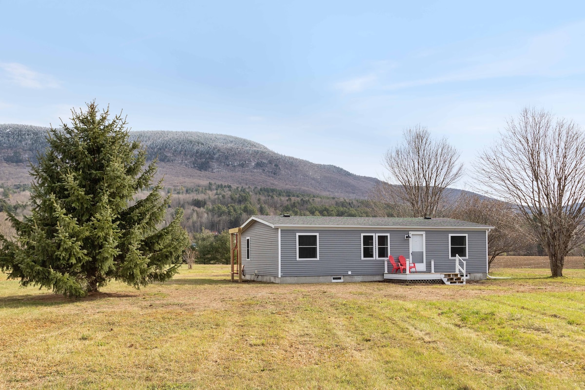 As featured in Conde Nast Traveler (1/21/22) Peaceful & impeccable retreat with a 180 degree view of Vermont's tallest mountains. Near Vermont's premier skiing, hiking, & outdoor adventures, you’ll love the sunset views and cozy atmosphere (huge sheepskin in front of the fireplace) and the attention to detail (live-edge wood details, spa-like bathroom). This is an incredible retreat for couples and families, adventurers and business travelers alike!