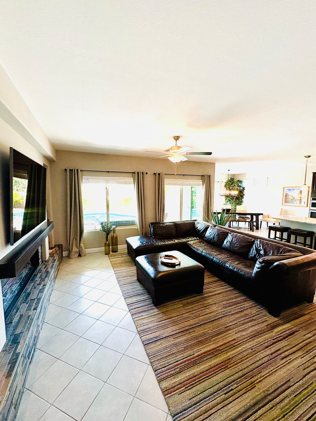 Welcome to your private desert retreat! This spacious 3,000 sq ft single-level home features 4 flexible bedrooms, where you can choose either a King bed or two singles! A FREE heated pool and spa, and a quiet corner lot backing onto a desert wash. Perfect for snowbirds, golf groups, couples, or families looking for sunshine, comfort, and space — without stairs. 55 minutes to Sky Harbour. Safeway is walking distance, while Walmart and Home Depot are 20 minutes away.