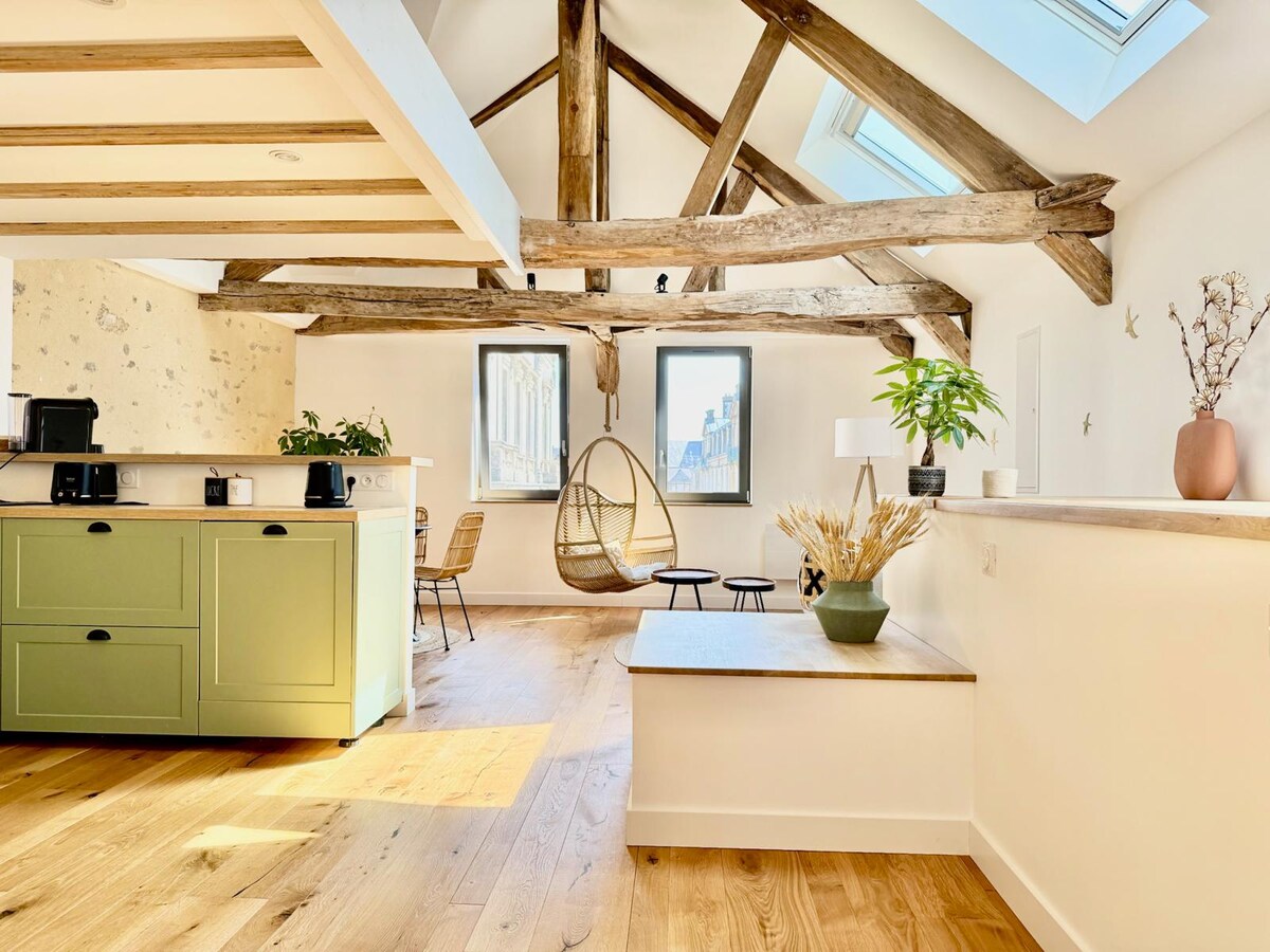 V pol leseni stavbi iz 18. stoletja nudimo očarljivo stanovanje, ki se nahaja v zgodovinskem središču Vannesa za pešce. Lokacija je edinstvena, naše stanovanje pa je zelo prijetno, toplo in svetlo s petimi velikimi okenskimi vrati, ki je mirno in idealno nameščeno v osrčju intramurosa za odkrivanje srednjeveškega mesta in zaliva Morbihan.