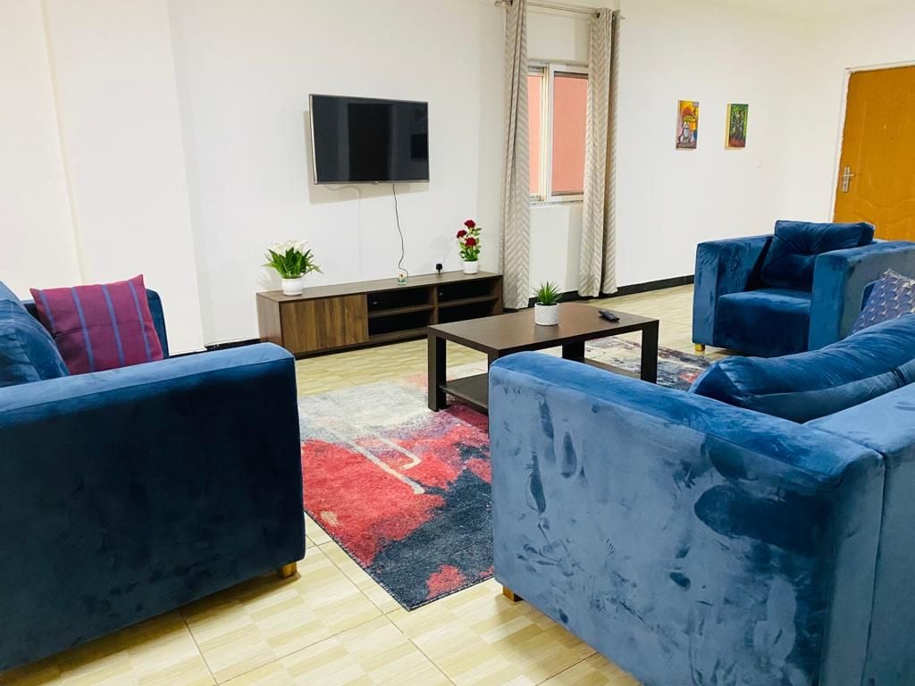 Eleganten 2-BR Retreat | Družine in prijatelji Sprostite se v našem 2-BR prenočišču v eni varni namestitvi PamV Estates. Imeli boste 2 spalnici, 2 kopalnici, 1 stranišče za goste, kuhinjo in prostorno dnevno sobo/dvorano, ki je kot nalašč za družine, prijatelje ali sodelavce, ki iščejo udobje in zasebnost. Samo 5 minut do supermarketa in kavarn Melcom ter približno 33 minut do letališča. Vključen je hiter Wi-Fi.