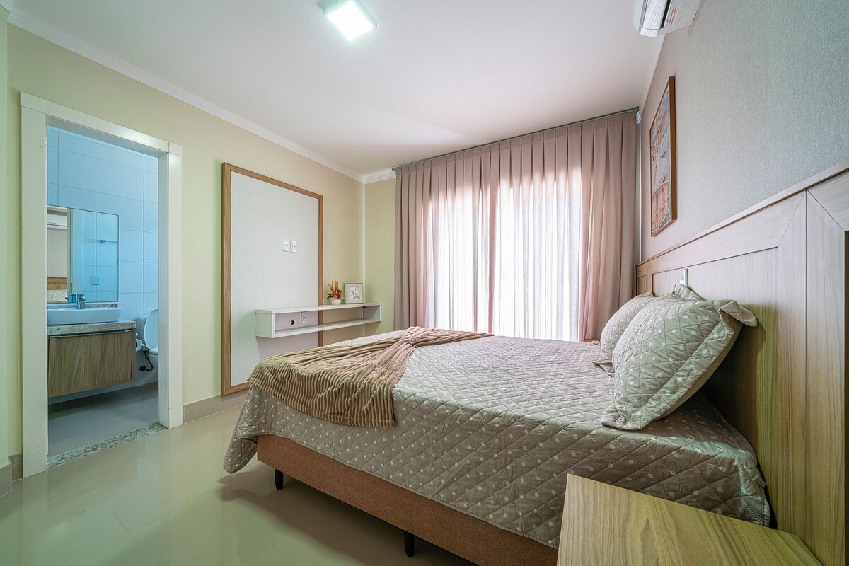 Fully equipped studio in the center of Bombinhas, designed for those who value structure and a strategic location. Just 180m from the beach, with spectacular views of the city and the sea, it offers a queen-size bed, sofa bed, air conditioning, Smart TV, and a equipped kitchen. The gourmet area with a barbecue enhances the experience. The building has a 24-hour reception, covered parking, and a rooftop with a swimming pool and sea views. Book now and experience Bombinhas with more exclusivity.