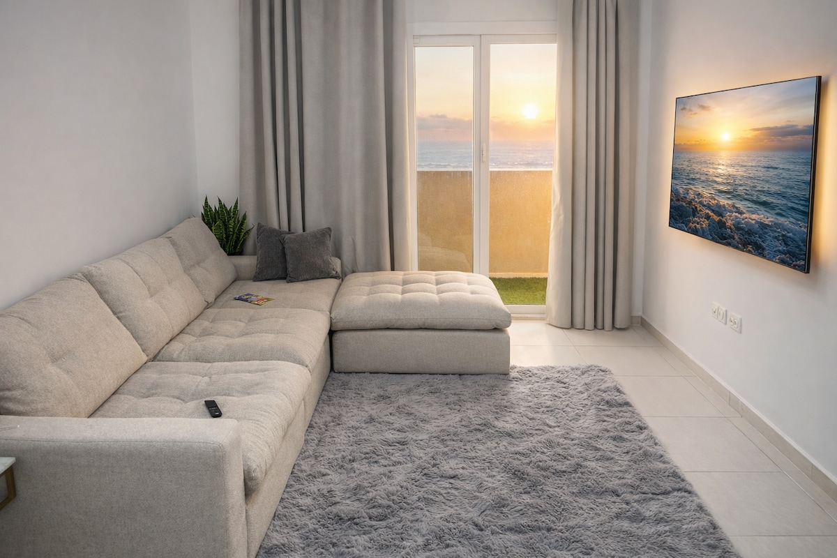 Современные апартаменты в Ajmal Makan Blue Bay — идеальное место для отдыха у моря! Просторная квартира в новом комплексе с собственным частным пляжем, бассейнами для взрослых и детей, прогулочной набережной и охраняемой территорией. Полностью меблирована и оснащена всем необходимым для комфортного проживания. Отлично подходит для семейного отдыха, романтических поездок и деловых путешественников. Наслаждайтесь комфортом, тишиной и курортной атмосферой всего в нескольких минутах от города.
