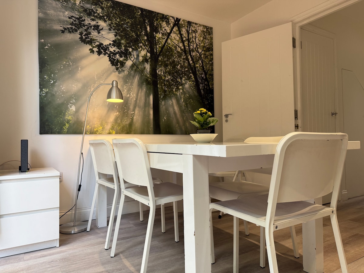 V živahnem Kentish Townu, na stanovanjski ulici , je naša hiša mirna in mirna, vendar 2 minuti hoje od glavne ceste z lepimi trgovinami in restavracijami. Še 2 minuti in ste v podzemni železnici, kratka vožnja do osrednjega Londona. Na voljo je posebna pisarna, čudovita dnevna soba in popolnoma opremljena kuhinja. Zgoraj je velika, lahka dvoposteljna soba in druga soba z raztegljivo posteljo ter osupljiva kopalnica s samostojno kopalnico.