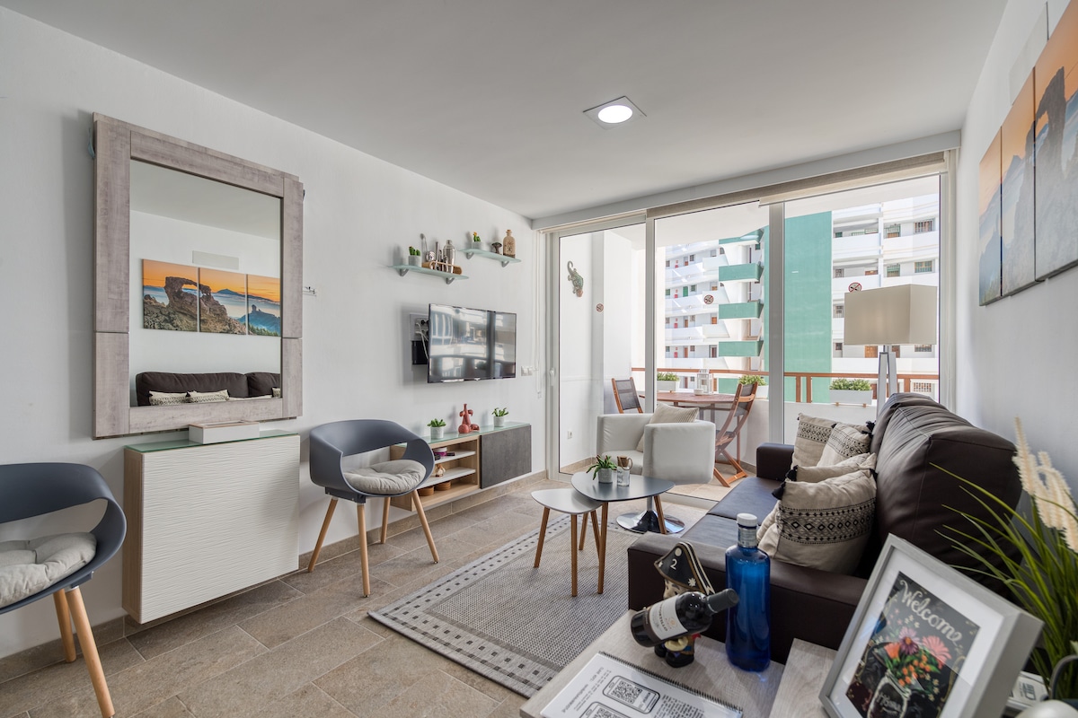 Stanovanje je bilo na splošni prenovi. Opremljeno je na zelo visoki ravni v sodobnem slogu in opremljeno z vso opremo in hitrim internetom. Nahaja se v samem središču zabavnega Maspalomasa, le 100 m od Yumba. Nahaja se v 5. nadstropju s čudovitim razgledom na okolico. Do široke peščene plaže je 500 m. Površina 45 m2, ki jo sestavljajo: dnevna soba s kuhinjsko nišo, spalnica, sončna terasa s pogledom na bazen. Na voljo je tudi parkirišče za goste.