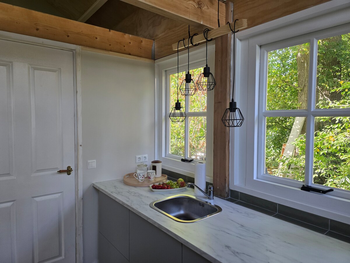 Dobrodošli v čudovitem Enschedeju – središču kulture, glasbe in živahnega nočnega življenja. V »vrtni hiši« z lastnim vhodom, kuhinjo, kopalnico in delovnim prostorom se lahko sprostite in uživate v pogledu na naš zeleni vrt. Ker smo blizu centra mesta, smo odlična izhodiščna točka za daljše bivanje. V »vrtni hiši« ste popolnoma samostojni z Wi-Fi, Netflix in popolnoma opremljeno kuhinjo. Najlepše kolesarske poti so tik pred vrati, aktivnemu vikendu nič ne stoji na poti.