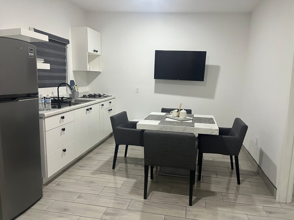 Uživajte v počitnicah v tem novem apartmaju z odlično lokacijo za obisk Valle de Guadalupe ali Ensenade, ki je idealen za daljše bivanje ali delo na daljavo. Apartma ima dve sobi z zakonsko posteljo, en raztegljiv kavč, dve kopalnici, popolnoma opremljeno kuhinjo, klimatsko napravo, teraso, brezplačno parkirišče v sklopu objekta in vse, kar potrebujete za izjemno udobno bivanje. Imamo hiter internet, pralni in sušilni stroj.