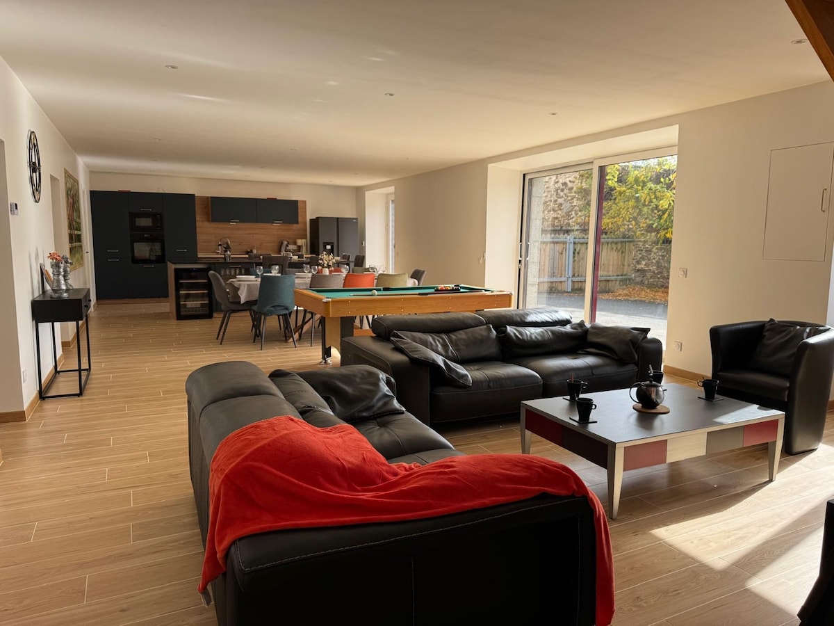 Za konec tedna ali teden dni odkrijte to prostorno, nedavno prenovljeno (230 m²) popolnoma neodvisno stanovanje, ki se nahaja v drugem nadstropju družinskega gradu, ki je naveden kot zgodovinski spomenik z odličnim panoramskim razgledom. Povzpnite se po čudovitem granitnem stopnišču, ki vodi do nje, in odkrijte njene veličastne prostore in svetle sobe. Ima vso potrebno opremo za trenutke z družino ali prijatelji. Imate dostop do 8 hektarjev gozdnega parka, ki obdaja namestitev in ribnik.