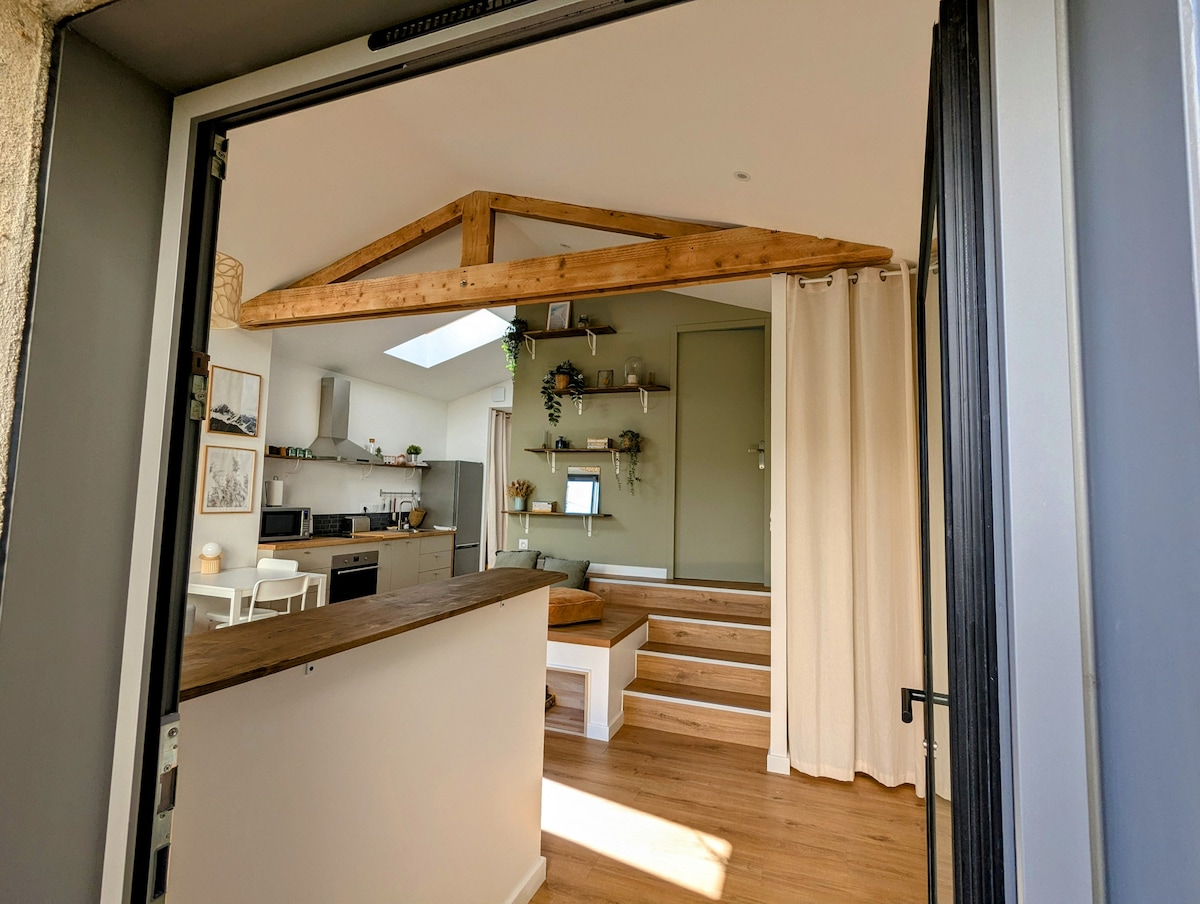Prostornih 80 m² z 2 spalnicama, prenovljeno, združuje udobje, mir in vrhunsko opremo. Idealno za družine ali poslovna potovanja - sprejme do 7 oseb s kakovostno posteljnino, vlakni in zasebno savno za sprostitev. Toplo vzdušje, mirno okolje. Center mesta Nantes se nahaja 5 minut hoje do tramvaja in je v neposredni bližini križišča, 10 minut vožnje. Bivališče, ki je zasnovano tako, da se boste počutili kot doma, ne glede na to, ali potujete ali ste na počitnicah.