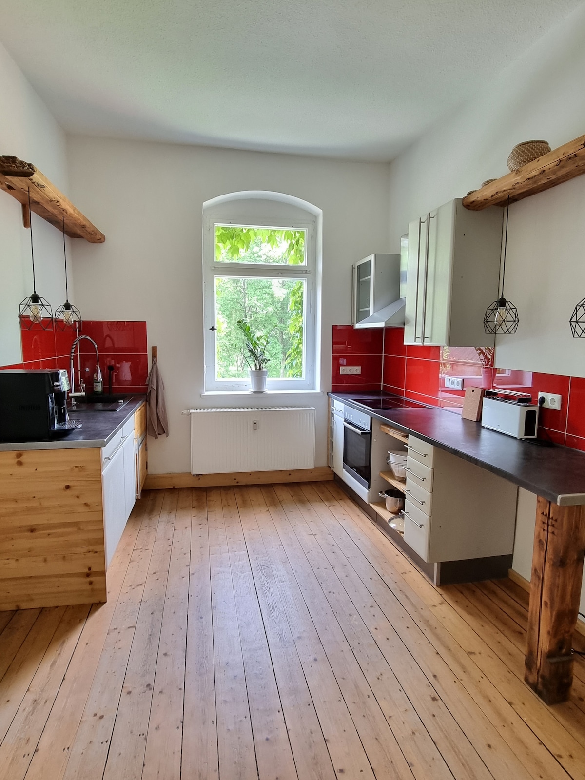 živimo v narodnem parku Saxon Switzerland na 200 let stari kmetiji v Bielatalu. Kmetija se nahaja na nadmorski višini 400 metrov, od tu pa se razprostira čudovit razgled na gorovje Elbe Sandstone. Z ljubeznijo smo preuredili srednji del stare kravje hleve s senom v stanovanje. Je del velike obnovljene 4-stranske kmetije.