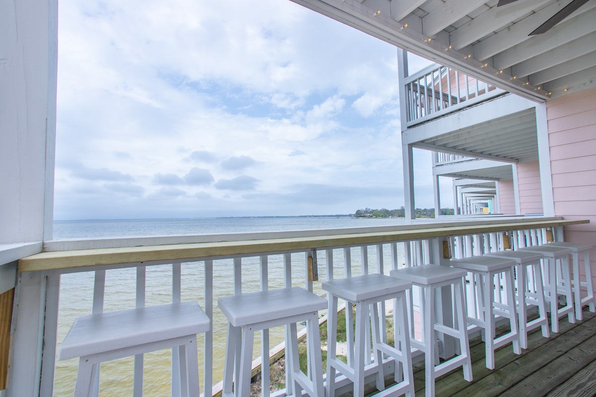 Dobrodošli v Paradise Pointu! Uživajte v čudovitem razgledu na balkon, mirnih vodah in obilici zabave. To prenočišče ob vodi sprejme do 12 gostov z 8 posteljami in 3 kopalnicami ter polno kuhinjo, pralnico, 2 kajakoma, 2 SUP-ima in še več. Nahaja se neposredno v plitvem zalivu zaliva Perdido in zagotavlja popoln kraj za družine, kjer lahko varno plavajo, opazujejo delfine, ribe, žar, sprostitev in še več Tukaj preživite cel dan, izolirano in skrito ali pa obiščite bližnje zalivske plaže in jedilnico v soseski Perdido Key. Nadaljujte za več podrobnosti