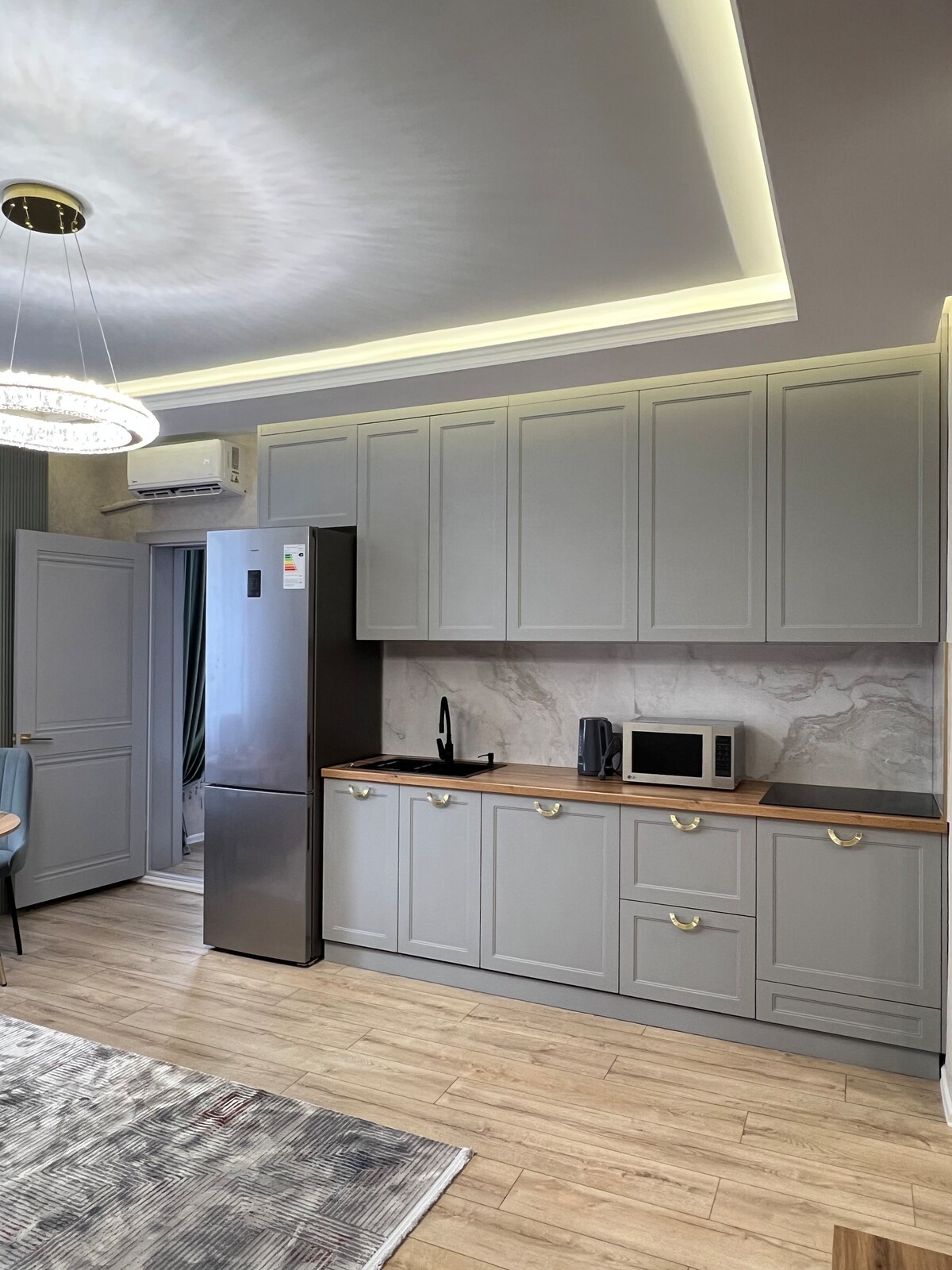 Spoštovani gostje, Z veseljem vam ponujamo priložnost, da se sprostite v udobju in se počutite kot doma. Vsako od stanovanj je urejeno v enojni elegantni zasnovi, ki ustvarja harmonično vzdušje in občutek miru za naše goste. Za vaše udobje ima stanovanje vse, kar potrebujete: popolnoma opremljeno kuhinjo za kuhanje vaših najljubših jedi, hiter Wi-Fi in pametno televizijo za zabavo in delo. Upamo, da bo vaše bivanje pri nas prineslo samo pozitivna čustva.