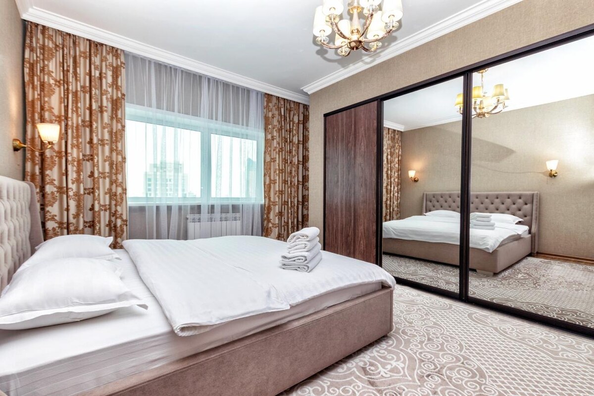 Спокойное жилье для расслабленного семейного отдыха.Почувсвуйте себя как дома ,находясь в далеке от него !В апартаментах продумано все до мелочей ,имеется все для комфортного проживания. Кровать king size, с ортопедическим хорошим матрасом. Имеются две рабочие зоны с разных комнатах Находится в центре ,но в тоже время спальном районе .Рядом есть огромный президентский парк, Ак орда ,монумент Байтерек ,множество хороших ресторанов,химчистка ,ателье ,салоны красоты и.т.д.
