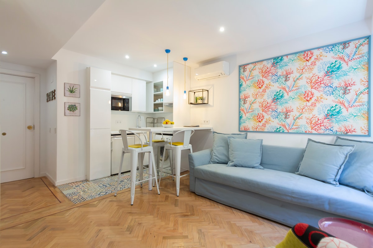 Doživite življenje domačinov v Madridu! To svetlo in veselo stanovanje se nahaja na odlični lokaciji v središču Madrida, v eni najbolj priljubljenih sosesk, Malasaña. Od legendarne ulice Gran Vía boste oddaljeni le nekaj korakov s številnimi možnostmi za fino jedilnico, vrhunsko nakupovanje in pomembne turistične znamenitosti. Pridite domov v okusno urejeno prenočišče s podrobnostmi za vsakim vogalom. Uživali boste v tej mirni oazi sredi Madrida.