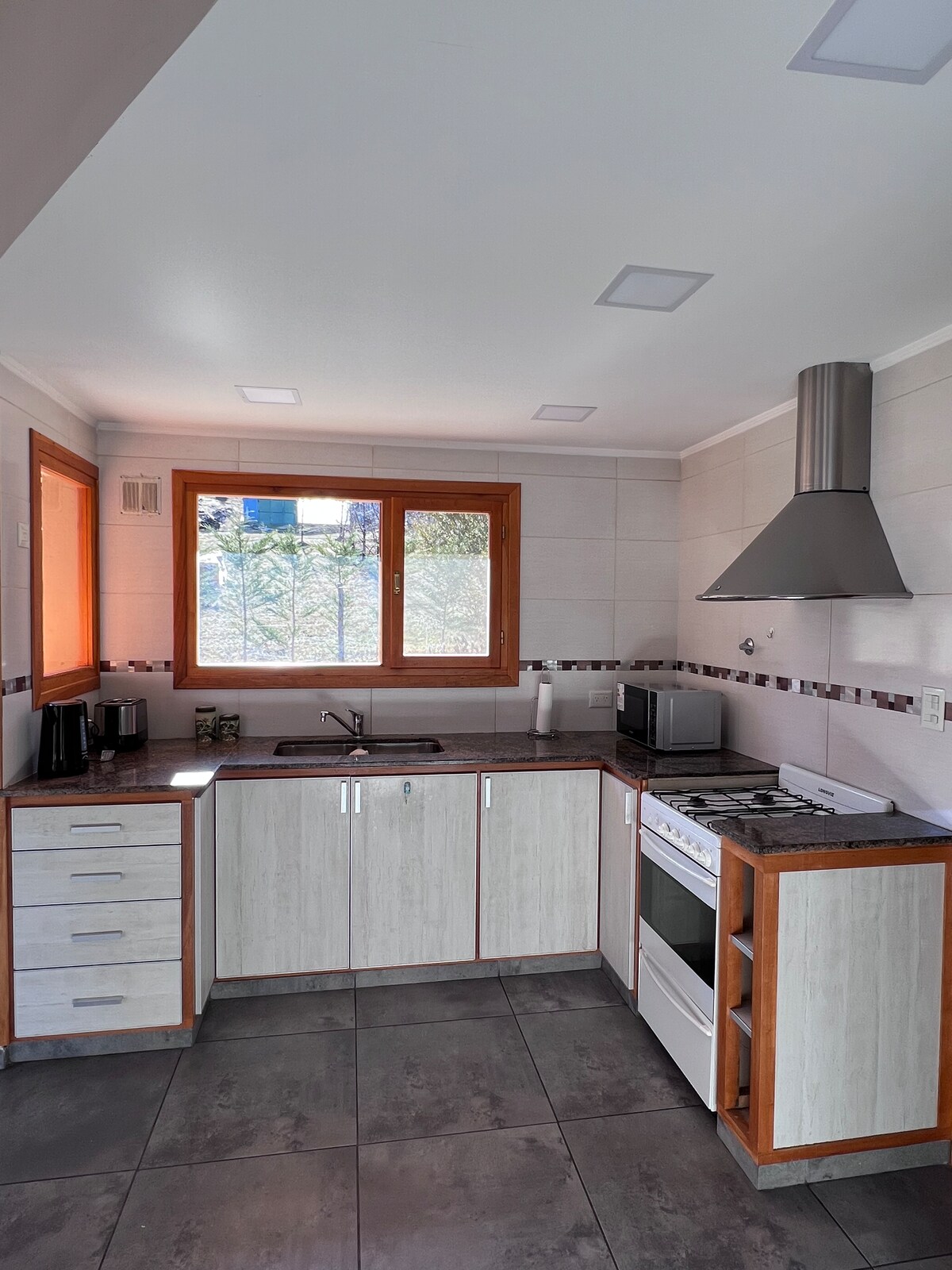 Uživajte v mirnem in udobnem bivanju v tem sodobnem, prostornem stanovanju, ki je le nekaj ulic stran od središča Esquela. Idealno za pare, družine ali majhne skupine, ki želijo raziskati naravne lepote Patagonije. Stanovanje ima visoke strope in svetle, odprte prostore, ki ustvarjajo sproščujoče in zračno vzdušje. V celoti je opremljen za največ štiri goste, z zasebnim parkiriščem, hitrim Wi-Fi-jem, neposredno televizijo in dostopom do storitev Netflix, HBO in Disney+. Za vaše udobje je na voljo tudi zunanji prostor za pranje perila.