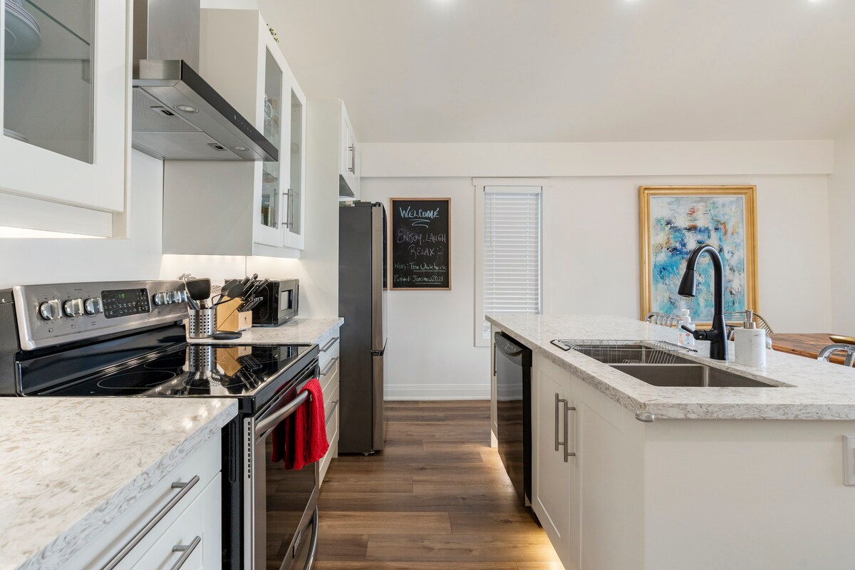 3 bedrooms, 4 beds, 2 bathrooms, with a large beautiful backyard overlooking Lake Erie. Enjoy the private beach & park, a 1 minute walk away and owned by the local family-friendly neighbourhood. Outdoor BBQ, firepit, loungers, lawn games, and pergola with awning. Ideally situated along "Wine County's" scenic drive, it's a short bike or drive to Kingsville's historic downtown, epic wineries, restaurants, breweries, boutiques, bakeries, cafes, golf courses, parks, & spas. 3-car driveway on-site.