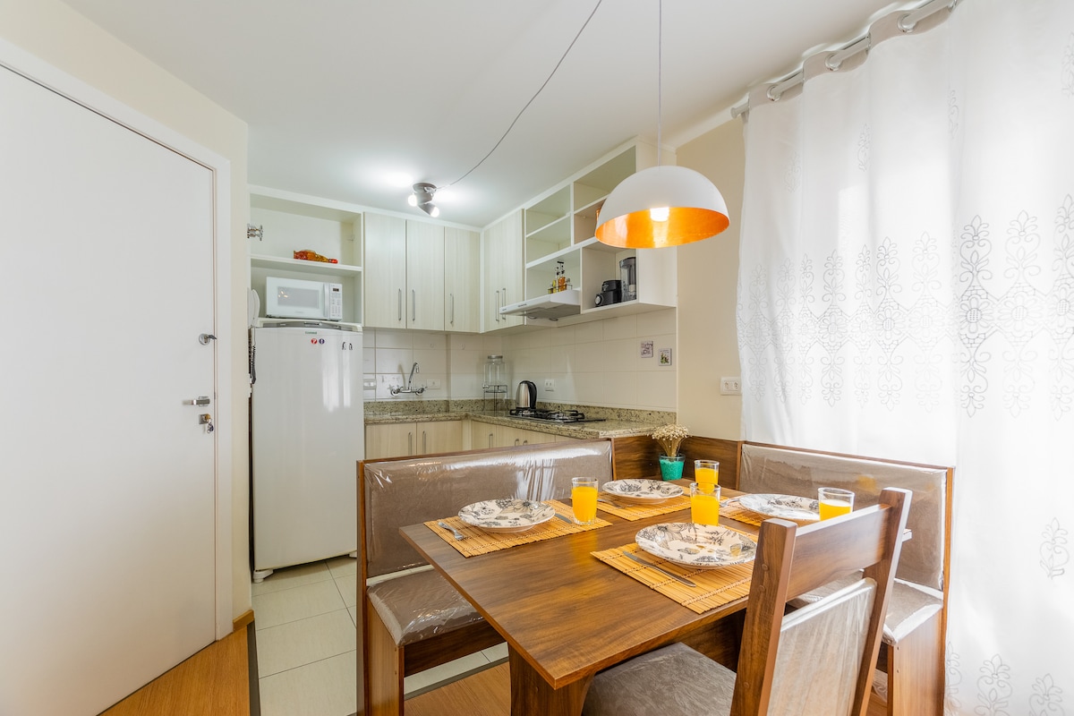 Nov studio za največ 2 osebi, udoben in udoben, da se boste počutili kot doma. Nahaja se v soseski Juvevê/Alto da Glória, plemenita regija Curitiba, z odličnimi možnostmi restavracij, tržnic, bank in lekarn. Nahajamo se 1 km od nakupovalnega središča Muellerja. Blizu znamenitosti, kot so muzej Oscarja Niemeyerja, Pope 's Grove in javni ogled. Stavba s teraso, kjer lahko uživate v soncu in pogledu na mesto!