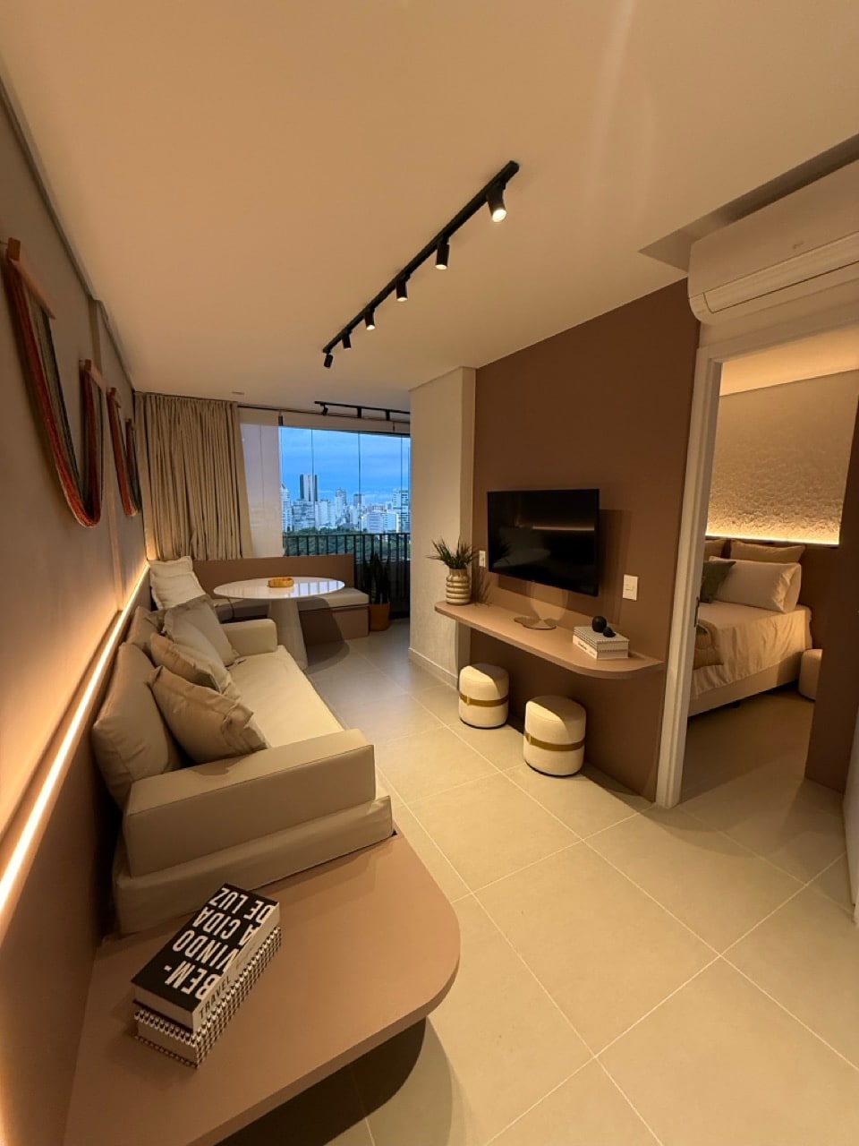 Na vrhu Copana, obrnjenega proti Aveniji Ipiranga, nas ta 44 m² velik studio vabi, da lebdimo nad pokrajino São Paulo. Občutek lahkotnosti prihaja iz tla, obloženih s ploščicami, ki se po prenovi raztezajo po celotni notranjosti stanovanja, ustvarjajo vizualno kontinuiteto in integracijo z značilnim vetričem severne fasade.