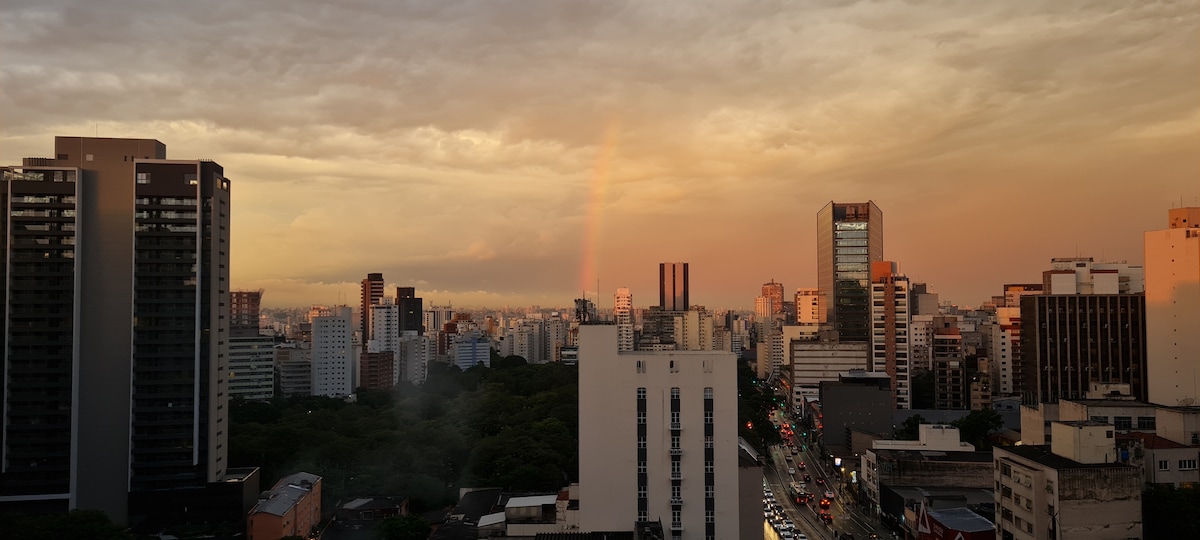 Čudovito stanovanje v osrčju mesta z 2 spalnicama in 2 kopalnicama. V celoti opremljeno, okrašeno in z osupljivim razgledom. Poleg vsega udobja, ki ga ponuja prostor, je lokacija kot nalašč za raziskovanje mesta peš: le nekaj korakov od trgovin Shopping Frei Caneca, Parque Augusta in Avenida Paulista. Območje je živahno in obkroženo z bari, pekarnami, kavarnami in odličnimi restavracijami. Idealno za vse, ki pridejo v São Paulo, ne glede na to, ali gre za delo, prosti čas ali turizem.