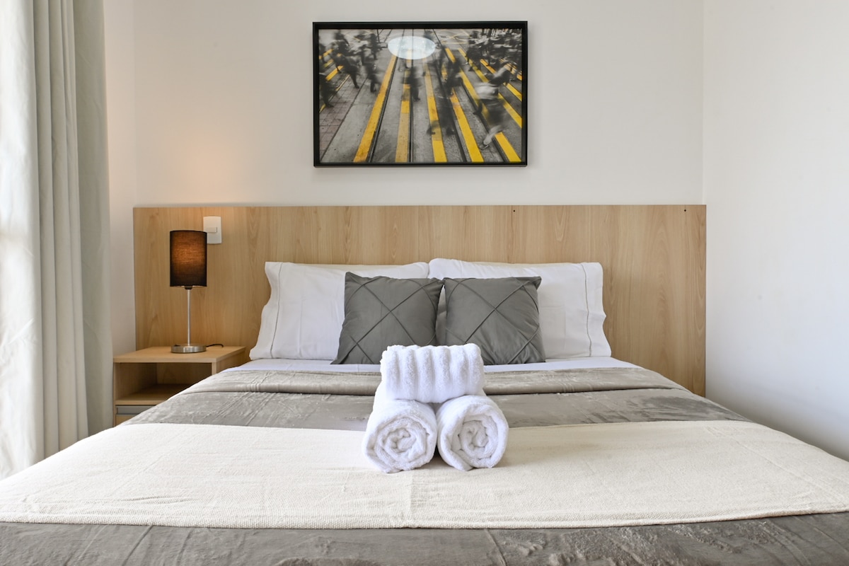 Nova in udobna garsonjera v osrčju São Paula, na novo dostavljena stavba z vsem novim! Zakonska postelja, zavesa za zatemnitev, sušilnik za lase, cvrtnik, kuhalnik za riž, aparat za kavo in vsi potrebni pripomočki za odlično in udobno skrb za goste Stavba se nahaja na zelo dobri lokaciji, 5 minut hoje od avenije Paulista/ zelo blizu podzemnih železnic Avenida Paulista in Consolação. Hišni ljubljenčki so zelo dobrodošli :)