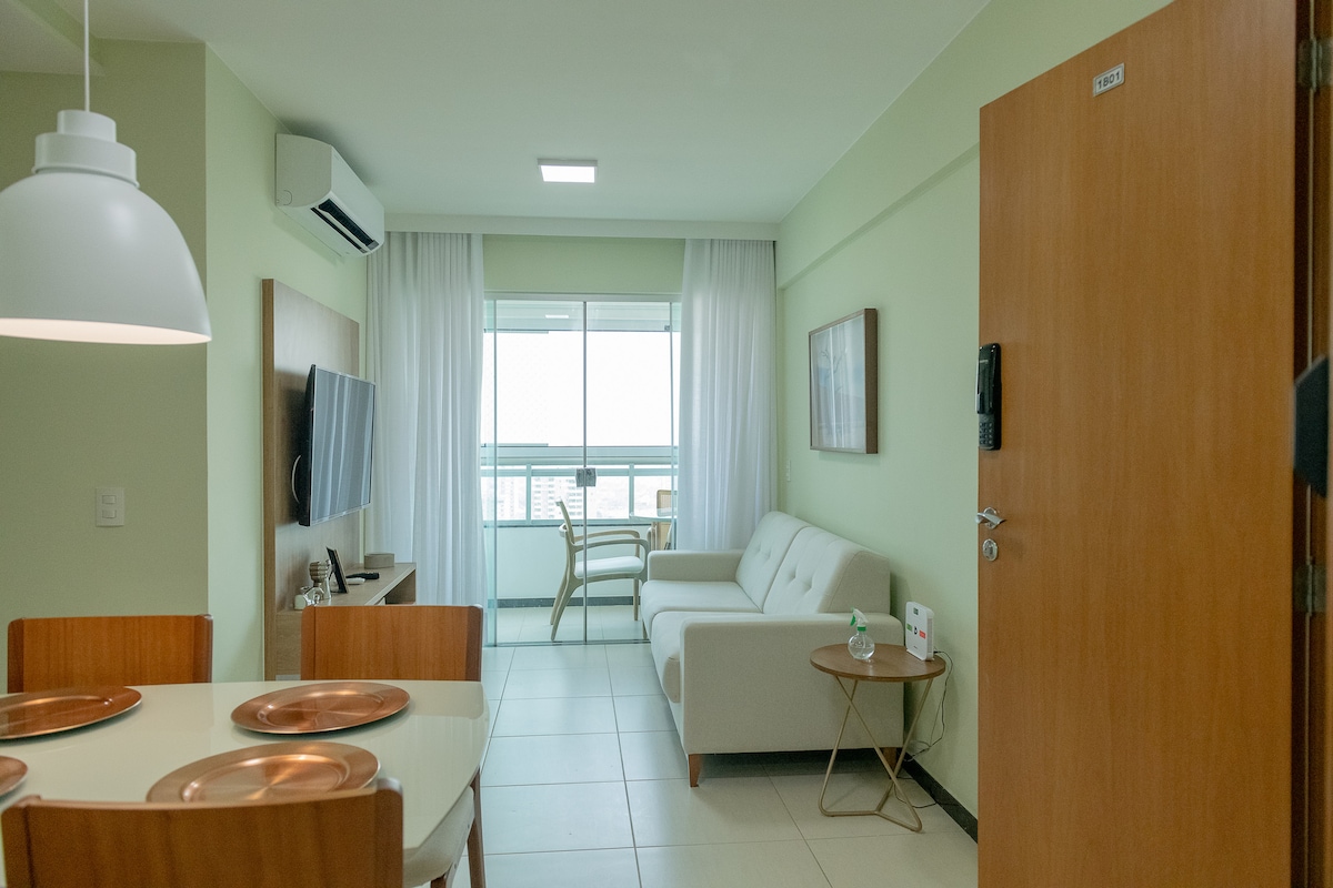 Stanovanje ima arhitekturo, ki jo podpiše eden najbolj znanih strokovnjakov v Goiâniji. Ideja je, da se med bivanjem počutite kot doma. Vse je samodejno; luči, zavesa, televizija, klimatska naprava, ki ponujajo opremo in prefinjenost, samo vprašajte Alexo. Poslušajte glasbo, opazujte več kot 1600 kanalov, ki so odprti in zaprti. Lepo se prhajte z velikodušno prho. Fotografirajte in počivajte na balkonu s senzacionalnim pogledom na sončni zahod in akrilnim stropom.