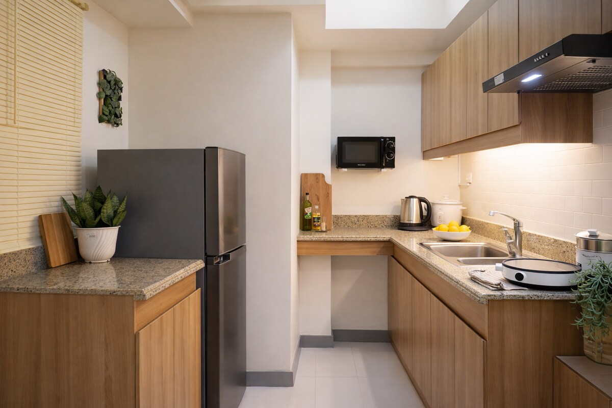 Naša enota se nahaja v 2. nadstropju butične stanovanjske stavbe z 24-urnim varovanjem, ki se nahaja v osrčju Poblacion, restavracije in zabaviščnega okrožja Makati, ki se nahaja v 2. nadstropju butične stanovanjske stavbe. Naš 1br se ponaša s sodobno indonezijsko, balijsko notranjostjo in opremo, vključno s 55-palčnim televizorjem, Netflx, 550 Mbps, s polno kuhinjo. Sprehodite se do bližnjih barov, priložnostnih restavracij in odličnih restavracij. Doživite umetnost in kulturo! Popolna destinacija za pare, samostojne pustolovce, poslovne popotnike, kratka potovanja in počitnice.