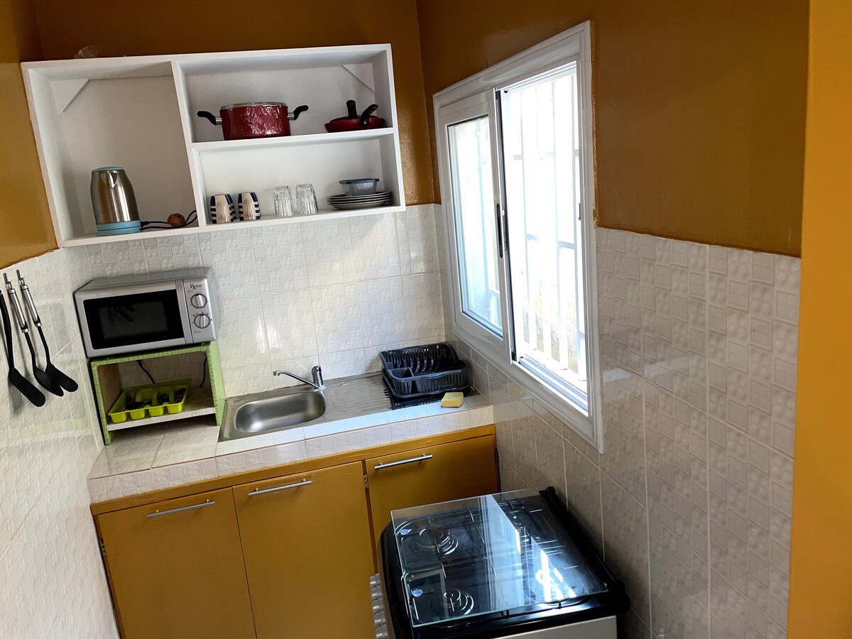 Vaša počitniška nastanitev ponuja: 1 spalnico z zakonsko posteljo (Queen), dnevno sobo z raztegljivim kavčem (na zahtevo je na voljo 1 otroška postelja), jedilnico s 4 stoli, kopalnico in popolnoma opremljeno kuhinjo. Vrt doda pridih spokojnosti, ki je kot nalašč za sprostitev po dnevu odkrivanja.