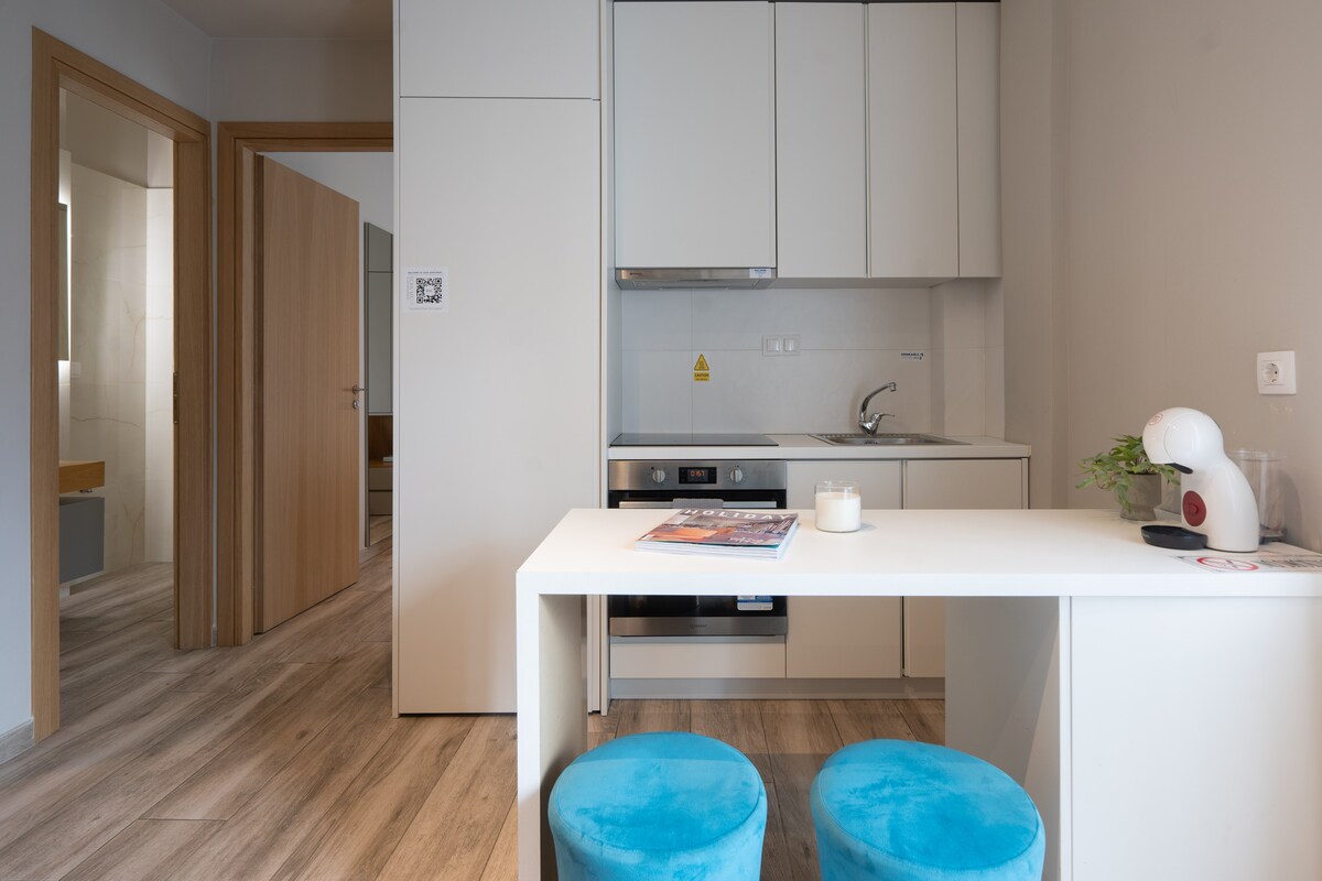 Stanovanje s pogledom na mirno ulico za pešce zagotavlja gostujočo izkušnjo odmaknjenosti in miru, hkrati pa se ponaša z osrednjo lokacijo v zgodovinskem središču Aten z najpomembnejšimi znamenitostmi v bližini. Balkon, poln naravne sončne svetlobe, ponuja neoviran razgled na Akropolo.