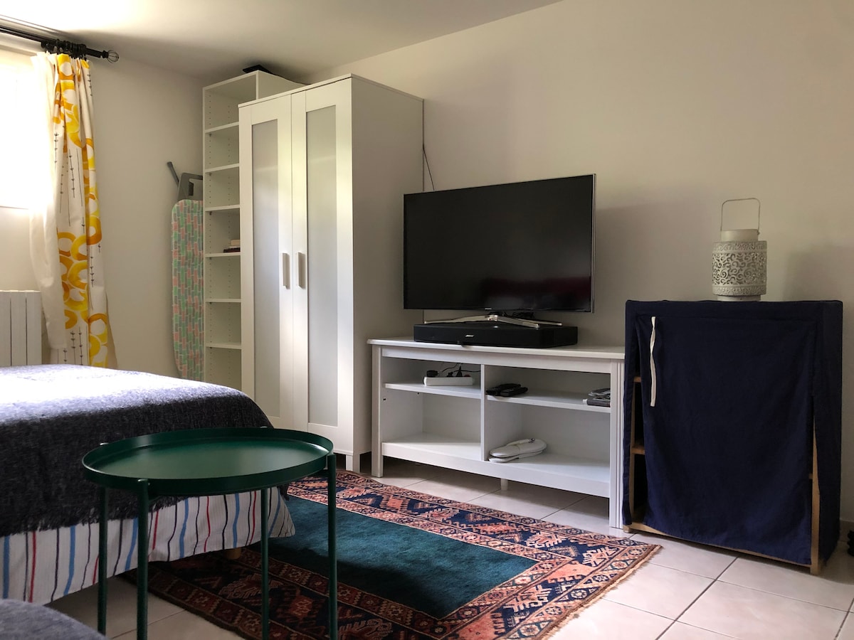 Lepo garsonjero v mirnem območju, 40 m2, sončno, na nivoju vrta, s kopalnico in majhno kuhinjo. Odlično za 2 osebi. Udobna postelja (širine 160 cm). Posteljnina je na voljo samo na dan vašega prihoda. Ne zagotavljamo pranja posteljnine in brisač. Lokacija: Rouen Est, 15 minut hoje od velike avtobusne postaje Chu de Rouen, avtobusna postaja T2 ali T3 ali 8 minut vožnje od zgodovinskega središča mesta. Gre za prizidek k našemu glavnemu prebivališču z neodvisnim vhodom.