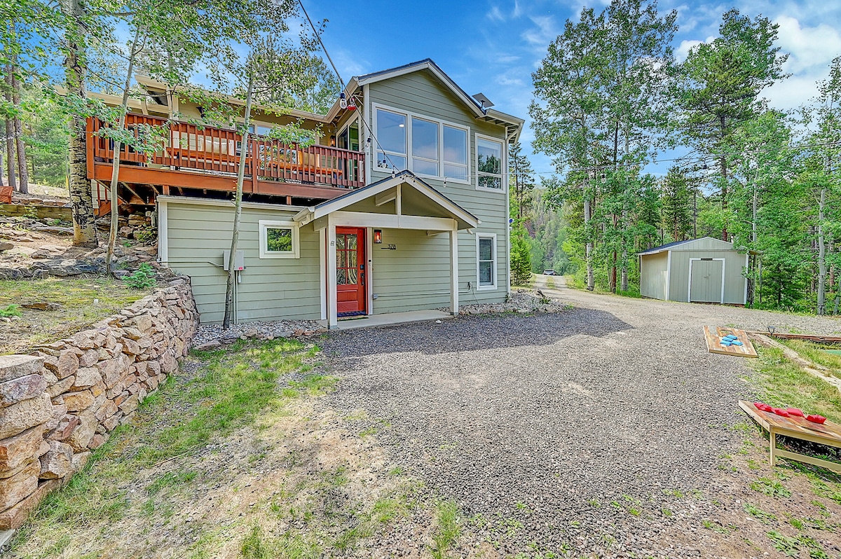 Escape to 2 acres of private mountain land in this peaceful and spacious Conifer retreat. Enjoy stunning views from multiple decks, including a detached rock-top deck perfect for yoga or meditation. Unwind in the hot tub, gather in the game room, or stream on two Smart TVs. Full privacy with no neighbors, just 10 minutes to dining and shops, and a short drive to Red Rocks and downtown Denver. Top Amenities: • Hot tub • Game room • Two Smart TVs • Fire pit • 2-acre private lot • 2-car garage