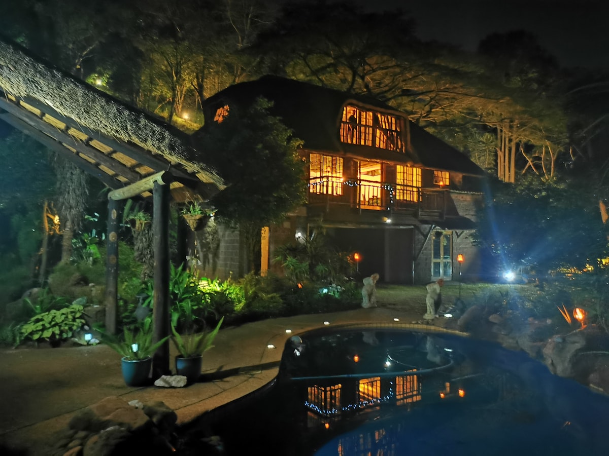 Obdana z bujnim zelenjem in ptičjim življenjem, z notranjim pridihom Afrike, ima salon odprtega tipa, kuhinjo in jedilnico z ločeno veliko in sončno spalnico s klimatsko napravo, garderobo/pisarno ter kopalnico s kadjo in prho. Zasebni vhod vključuje teraso z zunanjo jedilnico in braai (žar). Sončna varnostna moč zagotavlja neprekinjene luči, TV in dostop do interneta med izpadom električne energije ali obremenitve.