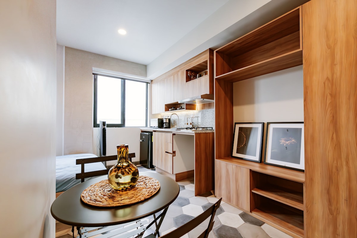Uživajte v pristnem doživetju v tej 100% obnovljeni nastanitvi. Rešili smo vse njegovo bistvo in ga izboljšali, ki se nahaja v Colonia Americani, ki je znana po svoji kulturni ponudbi, gastronomiji in bližini veleposlaništva. Studio Patzcuaro ima: Zakonska postelja (King) - najsodobnejša vzmetnica Čajna kuhinja z mikrovalovno pečico, mešalnikom in kozarci za vino 40-palčni televizor z Netflixom in HBO Minibar v hladilniku Solarij