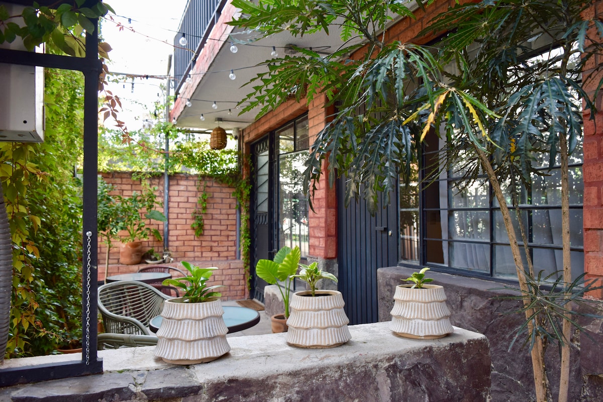 Enjoy an authentic experience in this 100% restored accommodation. We rescued its entire essence and improved it, located in the Americana neighborhood, known for its cultural and gastronomic offerings and its proximity to the embassy. Studio TzinTzunTzan features: Private terrace with outdoor furniture and dining area(work desk) King-size bed with high quality mattress Kitchenette with microwave, coffee maker, blender, and wine glasses 40-inch TV with Netflix and HBO Minibar refrigerator