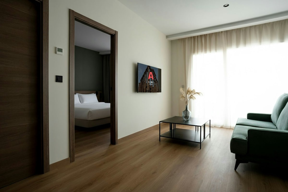The ideal option for enjoying Mérida with family or friends. These two-bedroom apartments adapt perfectly to your group: the 4-person unit features two additional single beds and the 5-person unit also includes a sofa bed. Enjoy a spacious layout with an entrance hall, a fully equipped kitchen, a living room, a full bathroom, and a private terrace — perfect for relaxing outdoors.