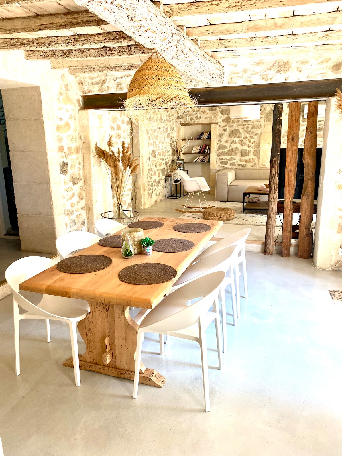 V zgodovinskem središču St-Rémyja, v eni najlepših ulic vasi: pristna hiša s stopniščem in renesančnim kaminom, ki je prenovljena in okusno okrašena s strani nekaj umetnikov. Hiša s površino 100 m2 je udobna in prijetna zaradi 2 kopalnic, velike kuhinje, izpostavljenih tramov, visokokakovostne razporeditve ležišč in terase s pogledom na streho. Zelo tiha. Očarljivo in prijetno življenje v provansalskem... umetniška galerija gostiteljev v pritličju