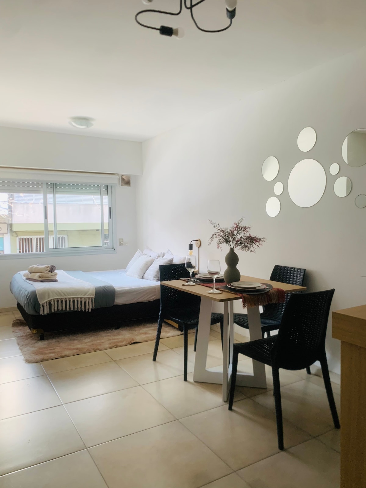 Prebudite se v osrčju zgodovinskega središča, le nekaj korakov od spomenika zastavi in reke Paraná. To sodobno in svetlo stanovanje ponuja idealno kombinacijo lokacije, udobja in miru, da lahko uživate v Rosariu kot domačini. Skrbno oblikovan prostor s 33 m² je kot nalašč za počitek, delo ali oddih v dvoje. Prostor ima klimatsko napravo za ogrevanje in hlajenje, pametno televizijo in hiter Wi-Fi, da bo vaše bivanje udobno že od prvega trenutka.