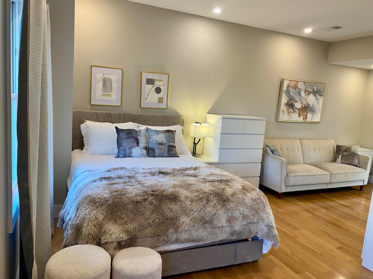 Z veseljem delim svojo najnovejšo zasnovo po dvoletnem projektu prenove. Ta dokončana klet je bila popolnoma prenovljena in zasnovana z veliko odlično opremo. Vključuje varovano parkirišče, zasebni vhod, popolnoma novo kuhinjsko nišo in zasebno kopalnico, namenski delovni prostor, VELIKO oken za naravno razsvetljavo, zaveso za zatemnitev v spalnici in celoten strop je zvočno izoliran. V spalnici smo uporabili dodatno zvočno izolacijo za dodatno udobje in užitek.