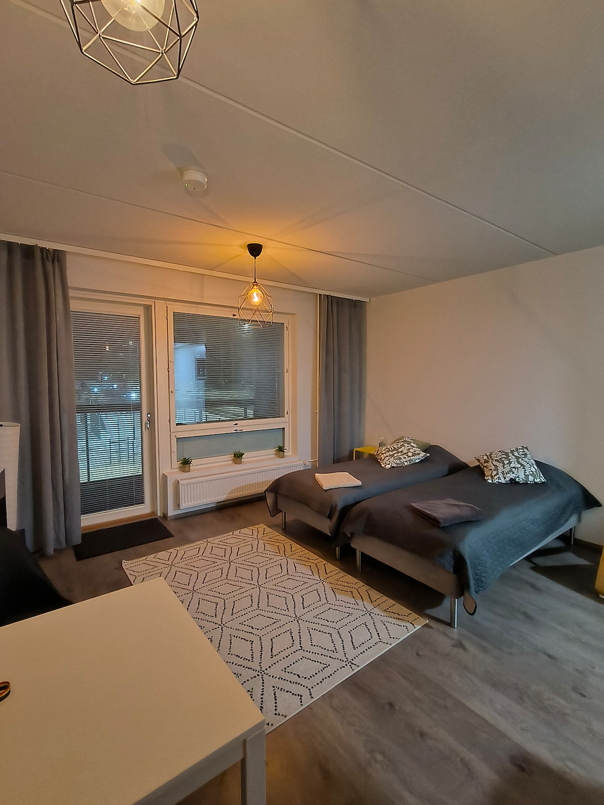 Garsonjera v mirni majhni hiši stran od mestnega vrveža. V bližini letališča Helsinki-Vantaa, dobre povezave z javnim prevozom, brezplačno parkiranje. 33 kvadratnih metrov velik studio apartma z lastnim vhodom. Popolnoma prenovljeno leta 2020. Toplotna črpalka z zračnim virom poskrbi, da je stanovanje poleti hladno, pozimi pa toplo. 160 cm zakonska postelja z vzmetnico Tempur, raztegljiv kavč 140 cm, po potrebi otroška potovalna postelja.